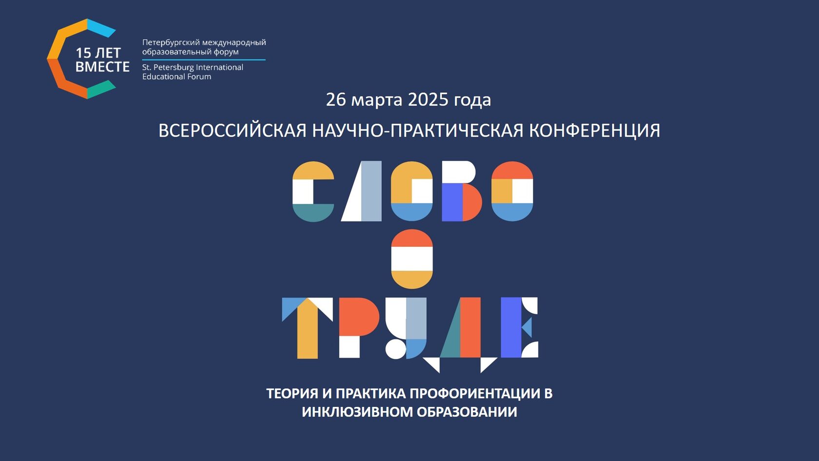 Конференция состоится в рамках XV Петербургского международного образовательного форума и деловой программы X Регионального чемпионата по профессиональному мастерству среди инвалидов и лиц с ограниченными возможностями здоровья «Абилимпикс» – Санкт-Петербург.